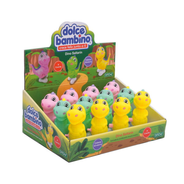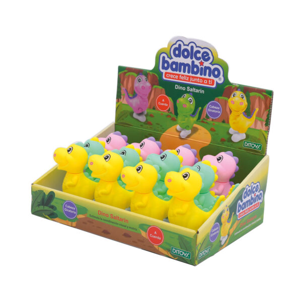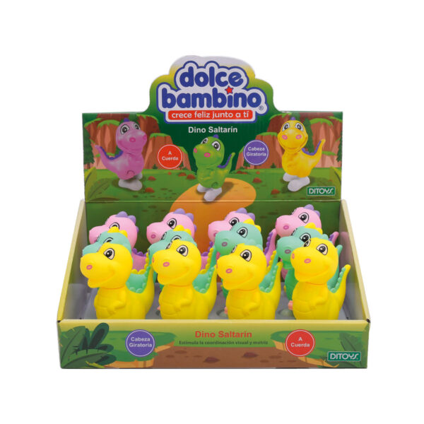 Divertido y colorido Dino, que salta al darle cuerda! Ideal para los más chiquitos de la familia.